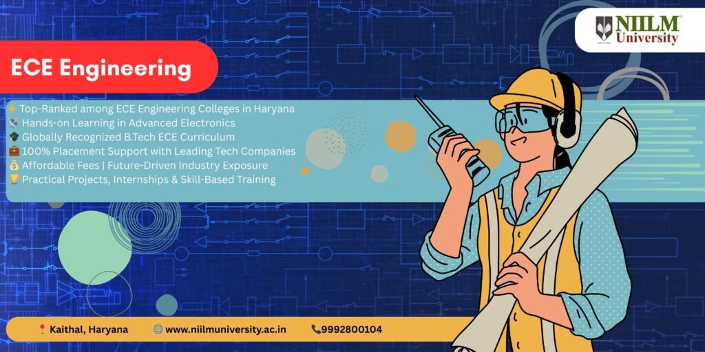 In today’s technology-driven world, Electronics and Communication Engineering (ECE) plays a pivotal role in transforming how we connect, communicate, and innovate. If you are looking for one of the most dynamic and future-ready ECE Engineering Colleges in Haryana, NIILM University stands as a premier choice. Known for its strong academic foundation, modern infrastructure, and commitment to practical learning, NIILM University empowers aspiring engineers to lead in areas like robotics, IoT, artificial intelligence, telecommunications, and embedded systems.